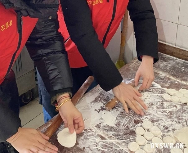 在大家的共同努力下,一个个饱满圆润的饺子摆满了托盘。不一会儿,热气腾腾的饺子出锅,志愿者们将饺子端到老人面前,老人们吃着美味的饺子,脸上洋溢着幸福的笑容,纷纷对志愿者的付出表示感谢。一位老人激动地说:“好久没有这么热闹了,这些孩子们就像我们的亲孙子、亲孙女一样,让我们心里暖乎乎的。”