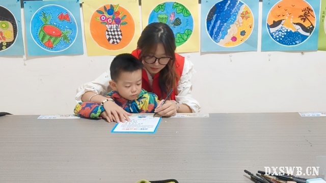 通过书写在“手掌”造型的作品上,大胆表达情绪。在王承煊的悉心陪伴下,两位同学逐渐打开心扉,共同探索解决问题的办法,在温暖阳光下,于逐梦之途快乐成长。