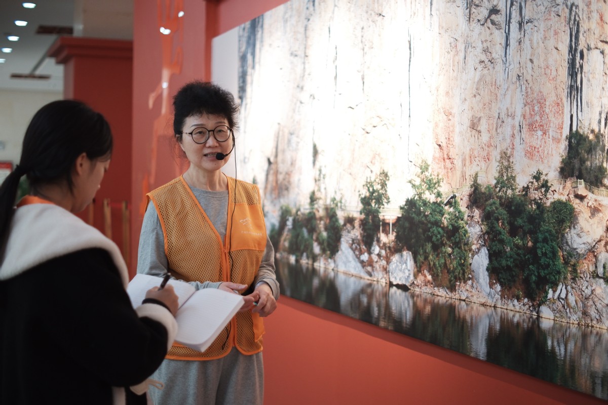 图为广西民族博物馆讲解员正在介绍花山岩画景区