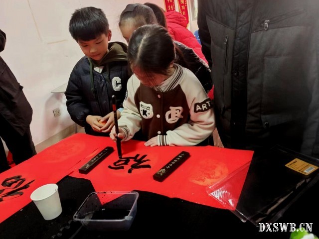 图为小朋友正在写新年“福”字。文欣怡 供图