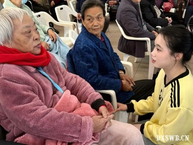 《最炫民族风》的动感旋律响起,演唱者富有激情的歌声瞬间点燃现场,而《好运来》将演唱与舞蹈完美结合,欢快的节奏、喜庆的氛围,让养老院充满了欢声笑语。