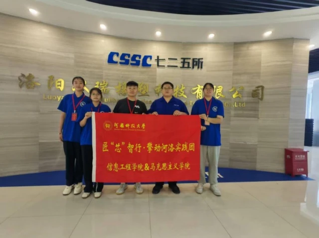 2025年7月5日,河南科技大学信息工程学院联合马克思主义学院组建的“匠‘芯’智行·擎动河洛”实践团赴中国船舶七二五所(双瑞集团三期园区)开展科技走访活动。本次活动旨在引导青年学子深入国家科研一线,了解材料科技在国防与民用领域的创新应用,感悟科技报国的使命担当,为培育新质生产力、服务国家战略需求贡献青春智慧。