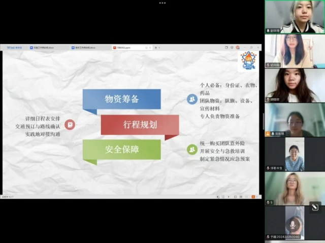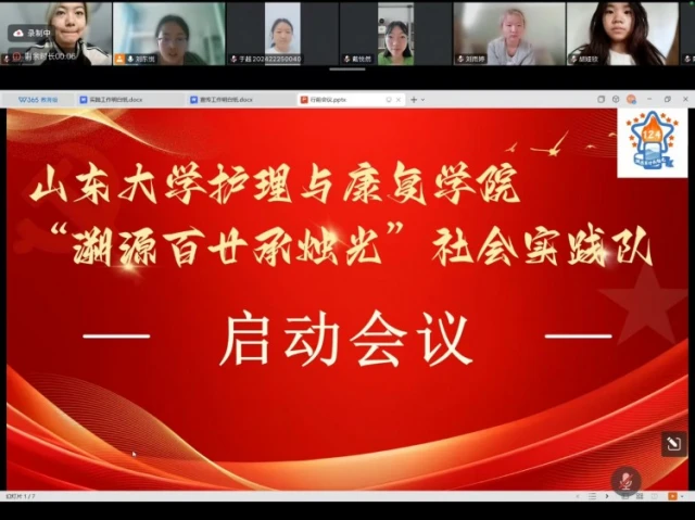 2025年7月8日星期二,山东大学护理与康复学院“溯源百廿承烛光”社会实践队通过线上会议形式召社会实践行前会议,全体队员云端聚首,为即将启动的实践活动做充分的准备。会议围绕实践主题明确、安全保障强化、任务分工落实三大核心展开,确保实践活动的顺利推进。