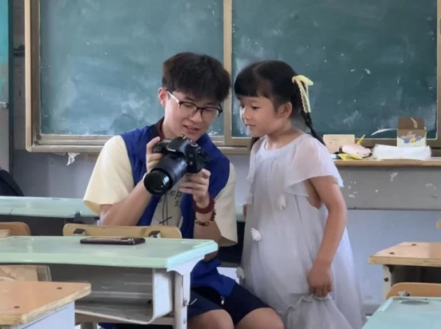 (“金种子”团队成员教孩子使用摄像机 通讯员 白芯蕊)