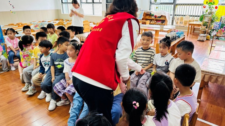 图为青禾守护团成员在为表现好的小朋友奖励贴纸。