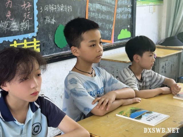 课堂尾声,教室内呈现出浓厚的学习氛围,学生们专注听讲,阳光洒满布置着安全教育标语的教室,生动展现知识传递的温暖场景。此次活动充分展现“三下乡”服务团助力乡村教育的责任担当,未来团队将持续开展多元实践,为乡村儿童成长注入青春力量。
