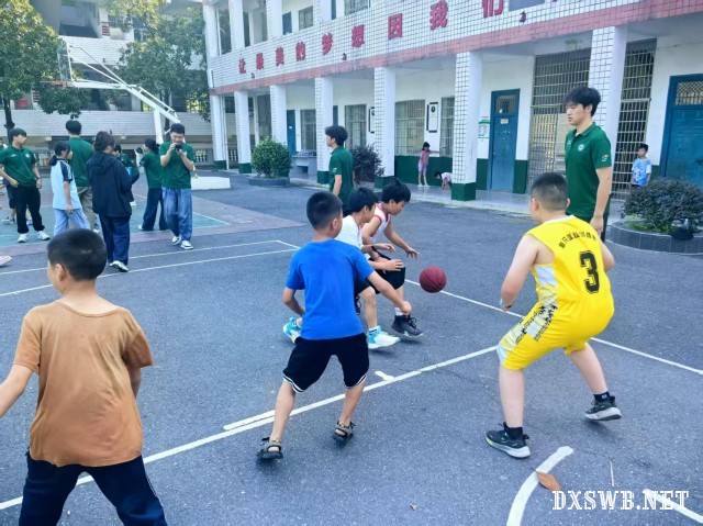 为丰富乡村儿童课余生活,增进三下乡队员与当地孩子的情感交流,2025年7月5日,支教组队员们在潘桥中学篮球场与该校学生展开了一场别开生面的友谊篮球赛。这场比赛以独特的赛制,点燃了赛场的热情,也架起了温暖的连心桥。