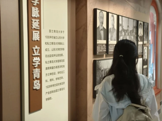 中心校区校史馆以 “百年学府、薪火相传” 为叙事主线,通过 2000 余件实物展品与 600 余幅历史图片,构建起立体的校史图谱。队员们在 “初创与奠基” 展区驻足良久,仔细研读周学熙创办山东高等学堂时的办学章程,深刻学习学校诞生之初便肩负的 “兴学强国” 使命;在 “抗战迁校” 板块,泛黄的流亡师生名册与辗转办学的珍贵影像,生动诠释了 “为天下储人才,为国家图富强” 的校训精神在战火中的淬炼。详解的 “院系调整中的担当”“改革开放后的跨越式发展” 等重要节点,让队员们系统把握了学校在国家高等教育布局中发挥的独特作用。