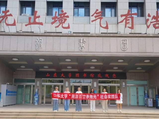 2025年7月13日,山东大学护理与康复学院“溯源百廿承烛光”社会实践队以 “探寻校史印记,礼赞百廿华章” 为主题,于济南市开展线下寻访活动。队员们先后走进山东大学图书馆、中心校区校史馆、校友馆及山东大学中心校区博物馆,通过系统查阅史料、实地考察馆藏,深入触摸学校百年发展的历史肌理,汲取精神养分。