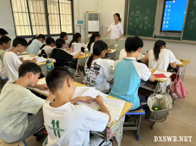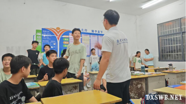 7月13日,今天是湖北师范大学“爱童行”实践队正式上课的第九天。骄阳似火也抵挡不住求知的热情。在明亮的教室里,七八年级的孩子们齐聚一堂,共同开启了趣味学文、语文、数学和英语的学习之旅。