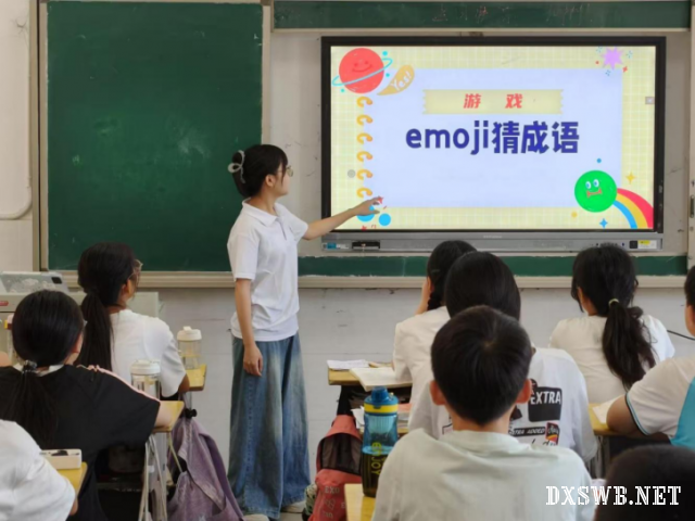 图片为湖北师范大学历史文化学院“爱童行”实践队成员邓雯在给学生上趣味文学"emoji猜成语"(大学生网报通讯员李思羽摄)
