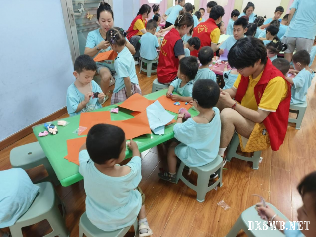 图 1 实践队员们教小朋友们折纸和绘画 通讯员 漆浩 供图