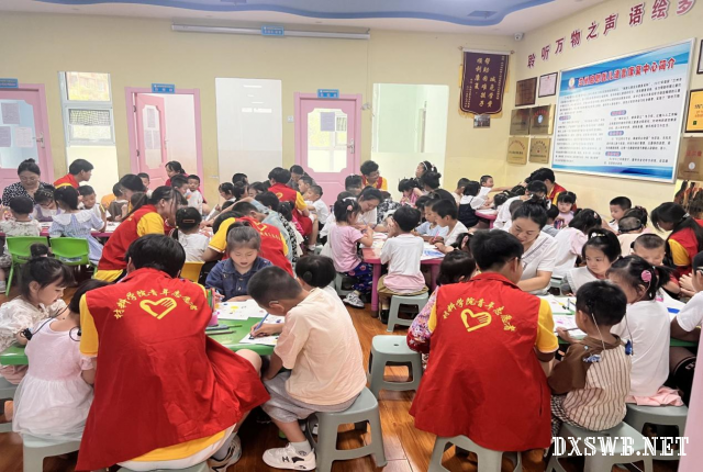 在绘画环节,队员们手把手教孩子们调色、勾勒线条,鼓励他们用画笔表达内心的想法。有的孩子画出了五彩斑斓的太阳,有的描绘了和家人游玩的场景,还有的用抽象的色彩展现着独特的想象。队员们不时驻足称赞,用掌声和微笑给予孩子们最大的肯定。