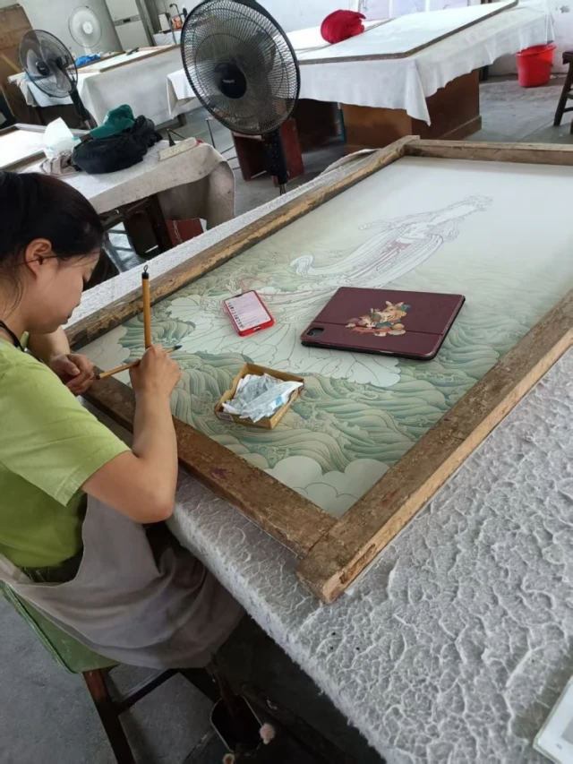 图为画师绘制工笔画的过程。通讯员赵子琪供图。