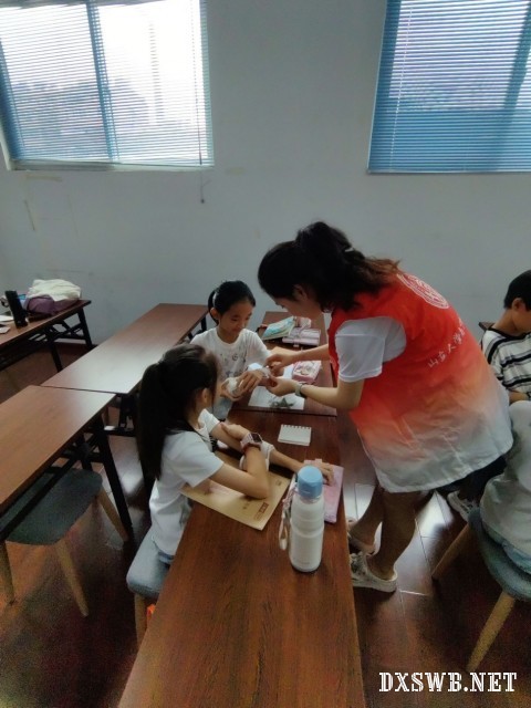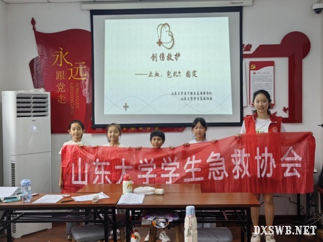 2025年7月21日,山东大学护理与康复学院南丁格尔志愿服务队成员栾佳慧面向小朋友们组织开展了主题为“创伤救护基础知识”的实用技能课程,数十名儿童通过理论学习与实操演练,系统掌握了常见意外伤害的初步处理方法,提升了面对常见意外伤害时的初步处理能力与安全意识。