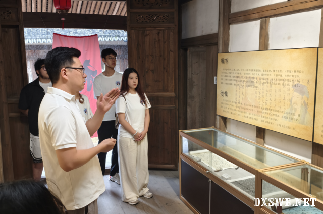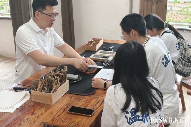 活动伊始,非遗传承人陶建通老师为实践队队员介绍了体验馆所在小院的历史背景,这使队员们对当地文化传承有了初步了解。随后,在体验馆展厅内,陶老师系统讲解了文字的演变历程、纸张的发展历史以及印刷技术的迭代更新,内容涵盖结绳记事至汉字、竹简至宣纸、雕版印刷至活字印刷等关键知识点。队员们认真聆听了讲解,并参观了馆内的文创产品展示区与荣誉墙,了解了非遗文化在当代的创新实践与发展活力。