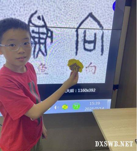 “大家看,这个字像不像牛的头部?有弯弯的牛角呢。”志愿者们用“看着甲骨文猜意思”等游戏激发兴趣,让抽象的古文字变得可知可感。孩子们的黏土作品被整齐排列在展示板上,巍峨的“山”、灵动的“牛”、圆润的“日”,构成一幅充满童趣的“甲骨文图鉴”。志愿者们看着这些稚嫩却真诚的创作,深刻体会到:当古老文字遇上童真创意,文化传承便有了最生动的模样。