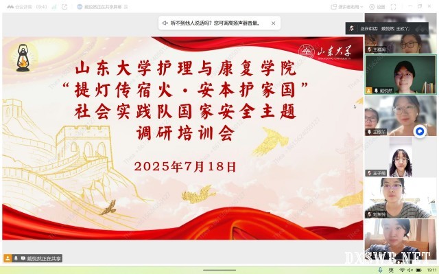 7月18日,山东大学护理与康复学院“提灯传宿火·安本护家国”社会实践队全体成员齐聚云端,召开线上调研培训会议。会议由队长戴悦然主持,聚焦提升队员国家安全主题调研能力,为深入基层实践筑牢方法论根基。戴悦然首先系统梳理了团队既往社会实践的宝贵调研经验,强调“问题导向、严谨求实”的核心原则,为本次以国家安全为核心的专项调研定下坚实基调。