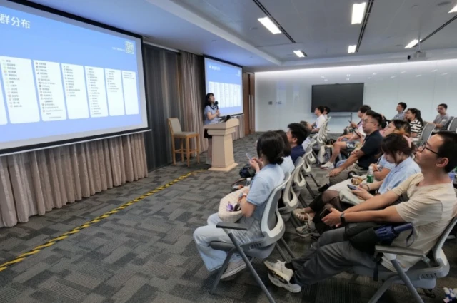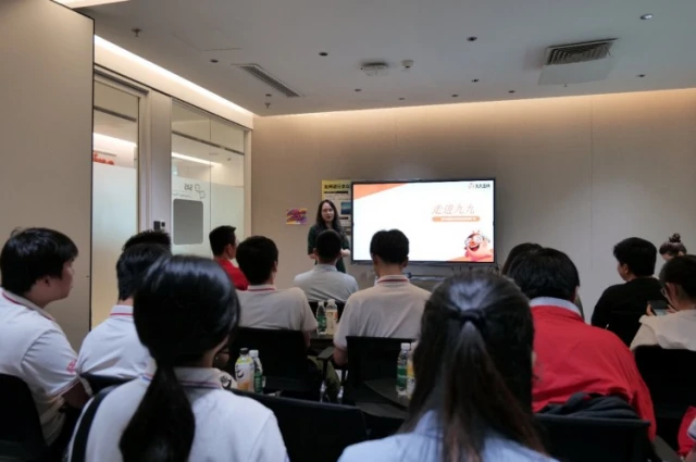 实践队参观了九九互动年轻、活跃、富有创新力的办公环境。座谈会上,人力资源副总裁彭瑾女士以“十年创业路”为主线,回顾公司发展历程,介绍规模、研发/发行能力、治理机制、战略路径及《猪来了》《决战阵地》《百炼英雄》等爆款产品,展现了坚持精品化与自我革新的轨迹,并分享了薪酬机制与员工培养模式。
