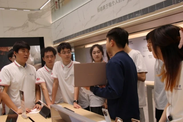 在荣耀展厅,实践队沉浸式体验了前沿科技:超薄折叠屏的精巧铰链设计、实时AI修图、精准换脸检测、YOYO智能体互动等,深刻感受到荣耀从“1+8+N”生态向以手机为核心、深度融合AI的全场景智能生态的战略升级。MagicOS操作系统的AI内核架构——打通设备、重构系统、赋能应用、端云协同,展示了其前瞻思路与工程实力,令师生们赞叹不已。