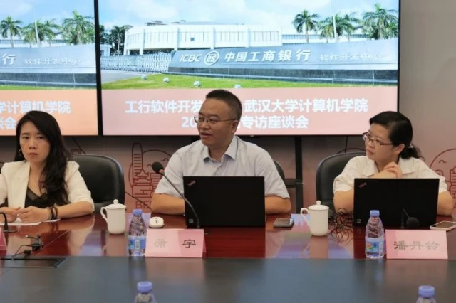 中国工商银行软件开发中心热情招待,座谈与会代表包括珠海中国工商银行软件开发中心专家林燕、人力资源部高级经理王芳、人力资源部经理邓文杰,还有同为武大校友的人力资源部资深经理蒲宇,开发部门副总经理潘丹玲。