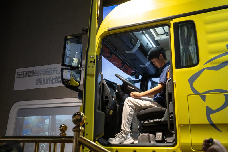 实践队员体验智能驾驶仓 张鑫灿摄