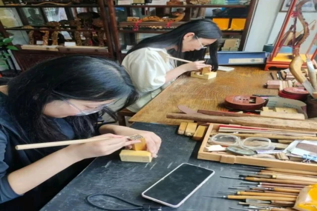 2.夯实成员文化理解力:通过系统性的文化研习与技艺实践,团队成员深入掌握了楷雕的历史渊源与工艺精髓。在持续的理论学习与实操训练中,成员们的文化理解力得到显著提升,不仅能够准确解读作品背后的文化内涵,更能将传统美学理念融入创作实践,为后续传承工作奠定了扎实的专业基础。