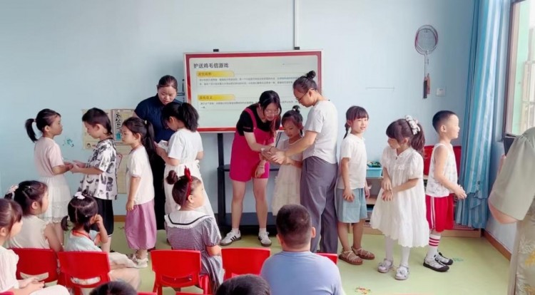 大学生志愿者联合镇团委设计了"护送鸡毛信"合作游戏。孩子们化身"小小情报员",以悄悄话接力传递写有安全口号的“鸡毛信”。最后一棒的小队员大声宣告“九一八事变”时,全场响起欢呼。“我们组配合得像真正的游击队!”参与游戏的孩子们兴奋地表示。志愿者王媛适时引导:“抗日英雄靠团结打败敌人,我们也要友爱相处哦!”