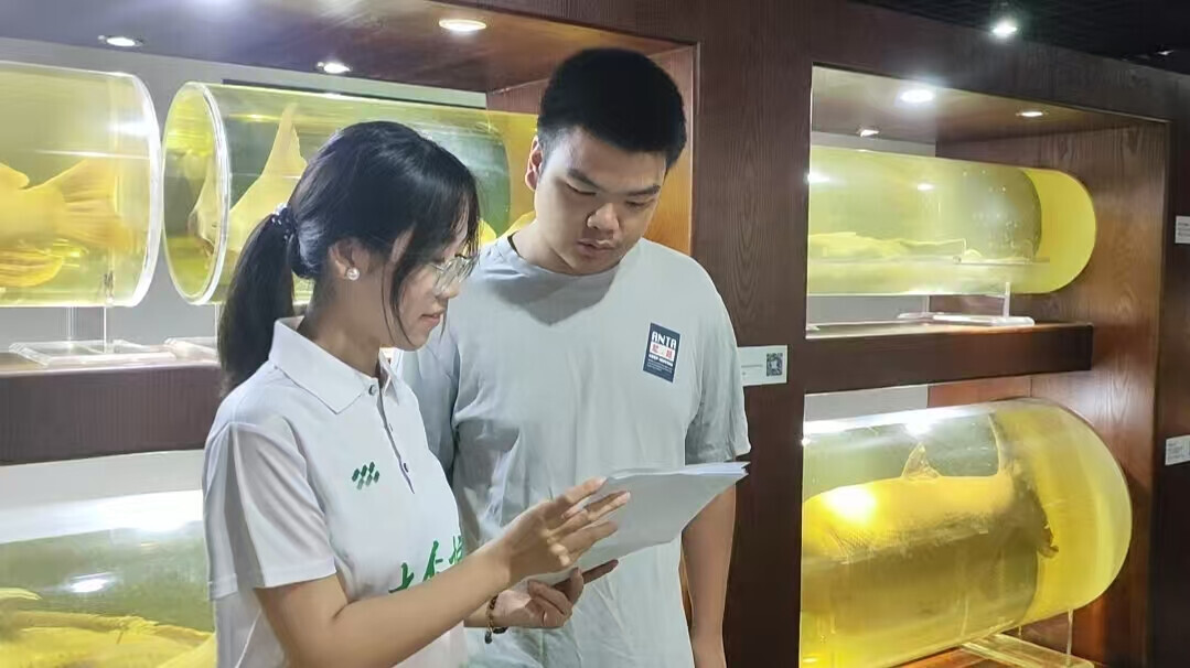 图为实践团成员在武汉市中国水生生物博物馆开展调研。向佳丽供图