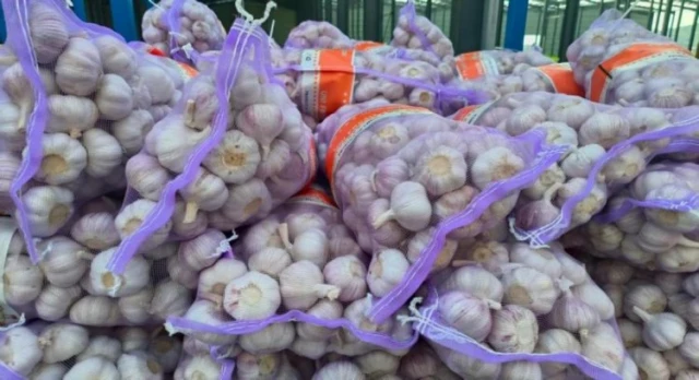 图为车间里成堆的优质白蒜。汤晶晶 供图。