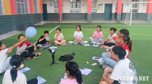 图为实践团成员带孩子们做游戏