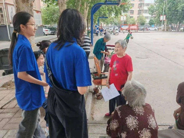 图为小分队成员邀请社区居民填写调查问卷