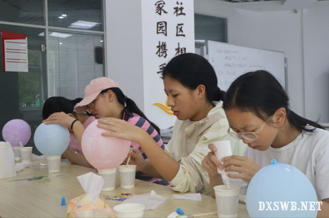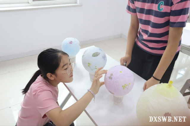 有几位同学还巧妙地利用掉落的小花,在灯罩边缘点缀出精致的装饰,每一双摆弄纸浆与花草的手,都在用心构建着独一无二的光影艺术品。