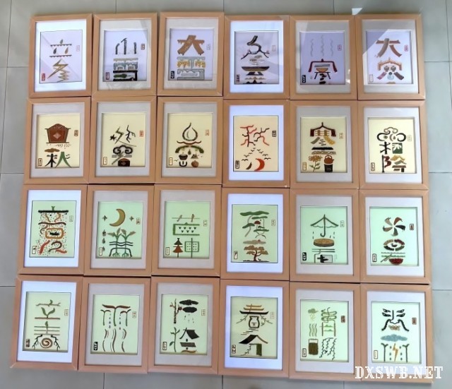 实践的核心环节是《二十四节气》系列粮艺作品的制作。在潘老师及其助手贾老师的耐心指导下,团队全面参与了从选材、定型、照面到装裱的全流程。初期,队员们有些拘谨,大多机械模仿模板。潘老师注意到这一点,鼓励大家说:“艺术不是复制,是表达。你们年轻人眼界开阔,要敢把自己的想法做进去。”受到启发后,队员们逐渐放开手脚,大胆融入创意:例如用红黑相间的相思豆表现西瓜果肉的天然纹理,根据不同节气的文化内涵自主搭配色彩……这些尝试得到了潘老师的充分肯定:“从你们作品里,我看到了朝气,这正是非遗最需要的活力!”