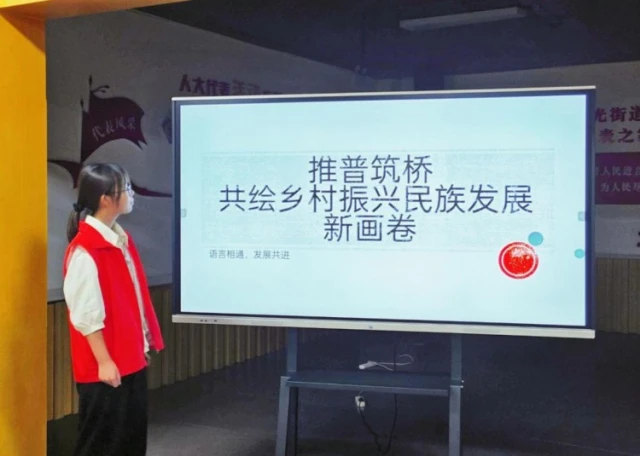 伴随着淅淅沥沥的小雨,宣讲活动正式拉开帷幕,团队成员们先将相应物资搬运到社区相关点位,摆放好各种奖品及游戏道具,调试多媒体放映器,确保后续活动无误进行。活动期间,有来自社区的工作者和社区居民们积极参加到了我们的活动中,他们认真倾听了团队成员带来的普通话宣讲,积极互动,提出了不一样的观点与看法。紧接着的互动小游戏,团队成员与参与者相谈甚欢,积极从各自的人生角度出发,都给对方带来了不一样的理解方向。此次活动让我们认识到普通话作为国家通用语言,在推动教育公平、提升国民素质、促进乡村振兴、助力经济发展和社会进步中发挥着基础性作用,也是传承中华优秀文化、促进各民族交往交流交融的有力支撑。活动结束后,团队成员们将剩下的活动物资回收,打扫现场,以保证活动结束后社区的良好环境。