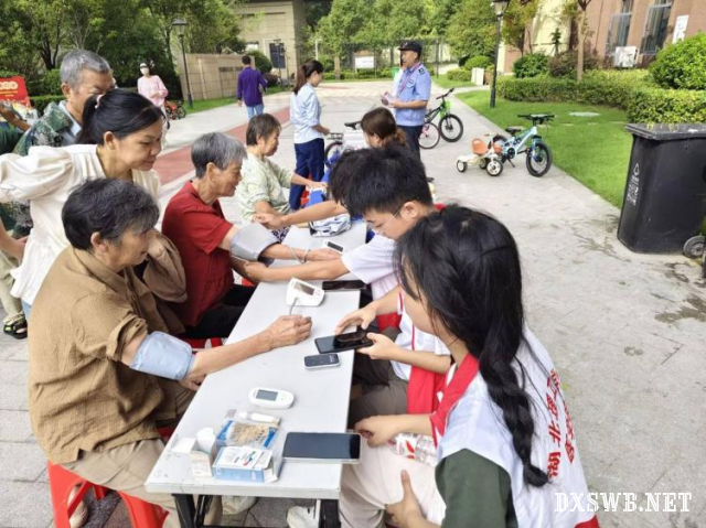 义诊区则是活动的“暖心担当”,湖北理工学院医学院实践部的志愿者们充分发挥专业优势,为业主们提供免费的血压、血糖测量服务。面对老年业主,志愿者们耐心询问日常饮食与用药情况,细致记录测量数据,并结合结果给出饮食、运动等健康建议。