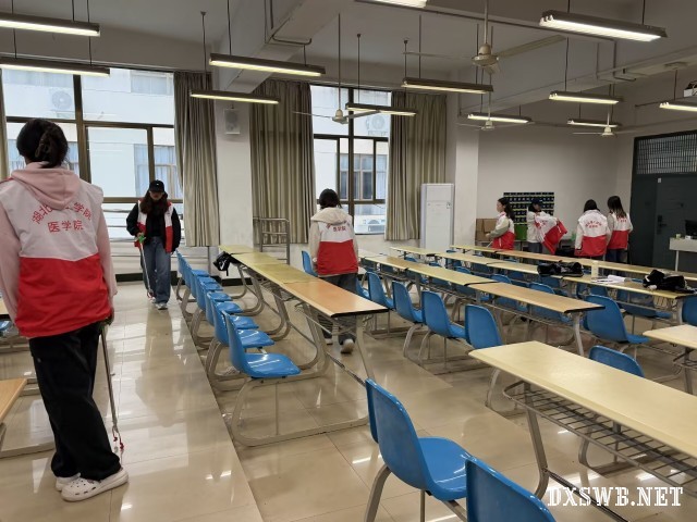 实践过程中,实践部成员化身现场“协调员”,在医学馆门口协助清点学员人数、发放物资与分组标识,实时跟进各小组进度。针对教室课桌下死角清扫、操场器材擦拭等任务,实践部成员还协助小组负责人对照标准检查,确保卫生隐患全消除,让校园环境焕新颜。
