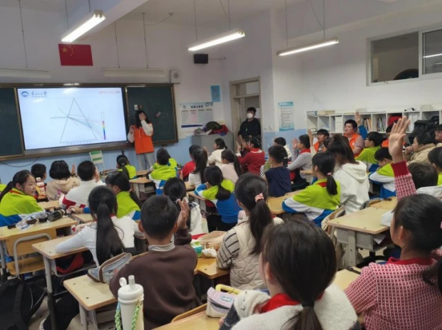 为实现“让学生懂原理、会观察、爱科学”的目标,科普团队前期做足充分准备:多次开展集体研讨、反复试课打磨课程逻辑,精准调试磁吸式光学演示箱、激光笔、三棱镜等教具,模拟课堂提问场景与突发状况,制定详细解决方案,确保科普内容既专业又符合小学生认知特点。