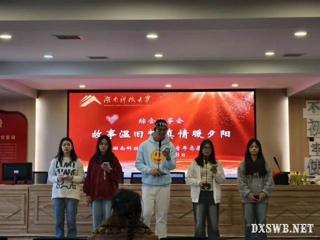 图为湖南科技大学青年志愿团主持线下综合故事会 申恩欣供图 2025年11月,湖南科技大学商学院青年志愿团每周二下午定期组织志愿者通过微信社交平台开展线上盲人故事会活动。活动期间,志愿者们通过语音诵读与解析,与幸福之家的叔叔阿姨们分享经典文学作品。盲人叔叔阿姨们也认真回应志愿者们的分享,他们不仅主动表达自己的阅读感悟,也对书中人物的命运与选择展开热烈的讨论。在这样双向的文化交流中,线上盲人故事会获得了突出的成效。线下活动跟进的步伐也随之加快。11月18日下午,湖南科技大学青年志愿团组织志愿者前往和平社区开展线下综合故事会活动。抵达后,活动负责人与社区负责人第一时间完成活动对接。在准备工作就绪后,故事会正式拉开帷幕。活动节目类型丰富,涵盖歌唱、声音剧场、小品等,内容精彩纷呈;击鼓传花、套圈等互动环节进一步拉近了志愿者与观众的距离。随着活动的推进,现场气氛不断升温,观众参与热情高涨,互动频繁。 在互动环节回忆共享角中,主持人讲述了自己小时候与父母快乐的小故事,随后在热烈的掌声中邀请观众主动分享自己的童年回忆,率先发言观众是一位年纪偏大的阿姨王秀英,面对观众的热情与期待,阿姨有些许的羞涩。但在志愿者的鼓励下,阿姨放松情绪,和大家讲起了自己童年调皮的趣事,赢得观众欢乐的笑声与掌声。在活动结束的采访中,阿姨脸上洋溢着幸福的笑容:“多亏了孩子们给了我这次机会,我能和大伙讲讲我以前的老故事,也能听大伙讲讲老故事,感觉自己像回到了年轻时候,浑身充满生活的干劲。”