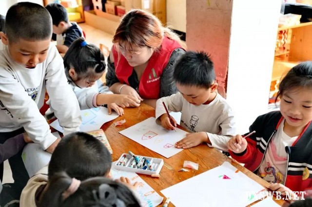 图2为志愿者与小朋友一起进行绘画。李松鸿 供图