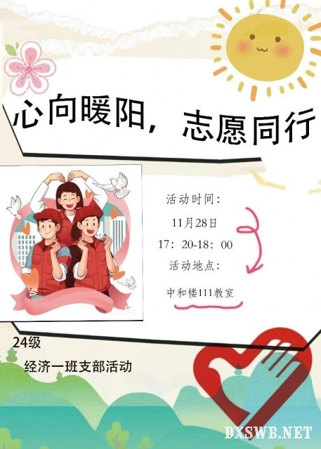 (通讯员 赵妍)11月28日下午,经济一班在中和楼开展以“心向暖阳,志愿同行”为主题的志愿宣讲活动。经济一班青志协小组长赵妍担任此次活动的宣讲人。