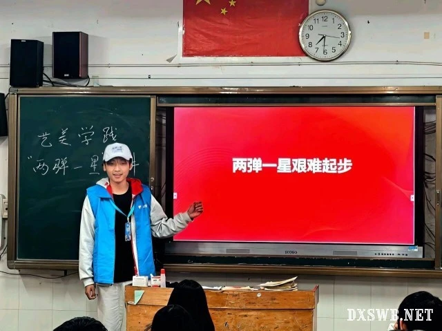 为深入贯彻落实党的二十大关于教育、科技、人才一体化发展的战略部署,推进立德树人根本任务,11月26日,由南宁理工学院艺术与传媒学院“艺美学践”大学生志愿服务队主办,广西—东盟经济技术开发区华侨中学共同协办的“一星耀寰,锦绣润青春”主题支教活动,在广西—东盟经济技术开发区华侨中学顺利举行。本次活动聚焦“两弹一星”精神传承与壮锦非遗文化推广,旨在推动红色精神与优秀传统文化在青少年群体中落地生根。