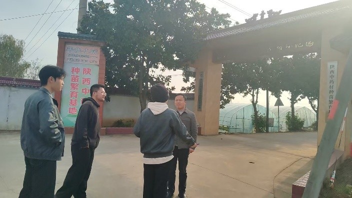 团队与陕西润农农业中药材种苗繁育基地负责人进行会面|孟佳凯供图