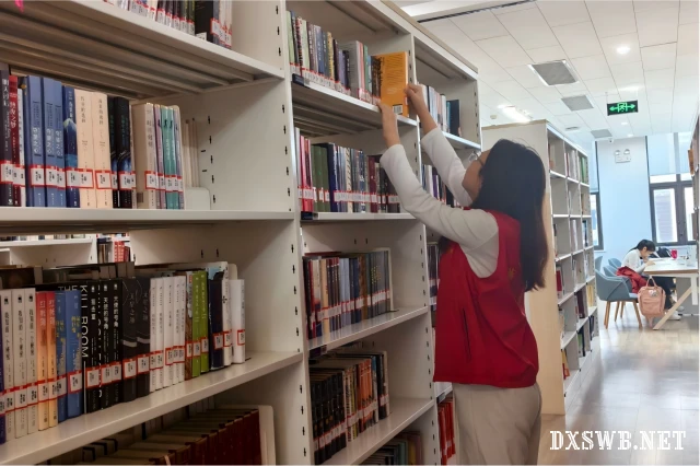 志愿者们在图书馆管理员的带领下进行了基础的培训,迅速掌握了图书检索与分类方法,并能熟练使用自助借阅机。随后,他们自主分工,分别前往不同的区域进行图书整理工作。有的在书架间认真核对编号,将旧书下架,同时将错位的书籍归于原处;有的根据分类规则,将归还的书籍准确归位......在大家的分工合作下,原本略显杂乱的书架变得井然有序,使借阅者得以更便捷地检索图书。同时,他们还在少儿阅览区为前来借阅图书的小朋友们提供了热情的指引,帮助他们找到心仪的书籍,为读者提供了个性化的服务与良好的阅读环境。