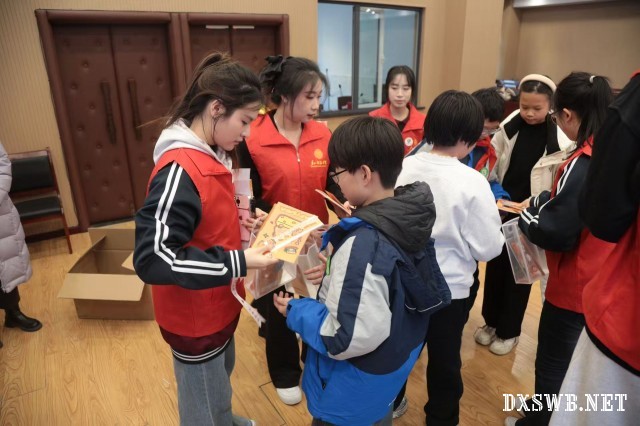 志愿者在为同学们分发奖品。陈秋含 摄