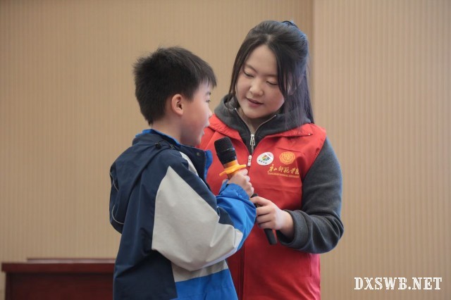 志愿者与税钢小学的小朋友进行互动。陈秋含 摄