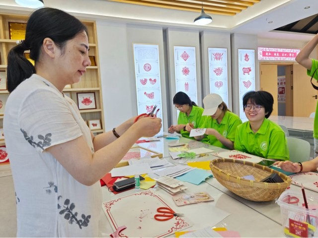 随后,苏敏老师进行了实践操作演示,展示了从设计到剪裁再到成品的全过程。团队成员们纷纷动手实践,亲手制作剪纸作品,感受剪纸艺术的魅力。