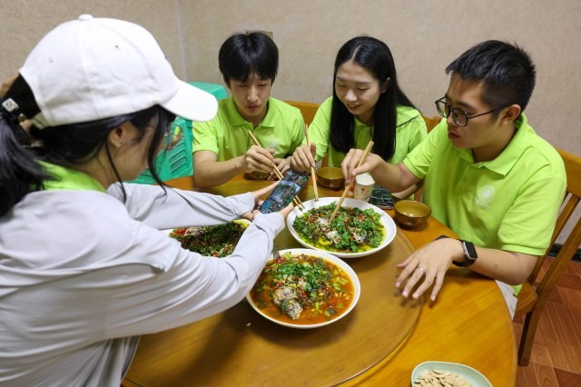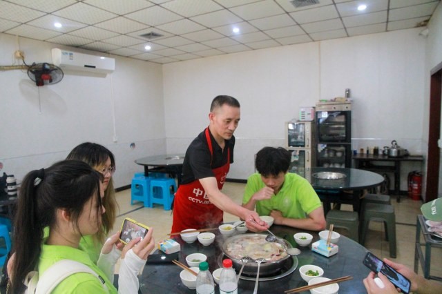 图为志愿者为当地特色美食公益拍摄宣传片。大学生网报通讯员 刘志杰 供图