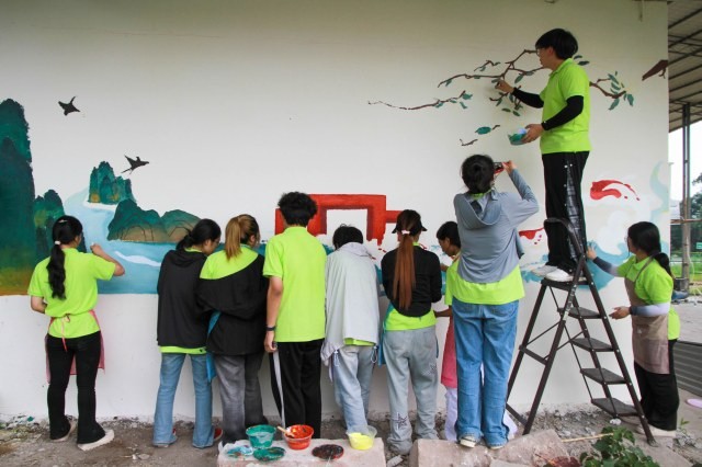 图为志愿者进行特色墙绘 大学生网报通讯员 刘志杰 供图