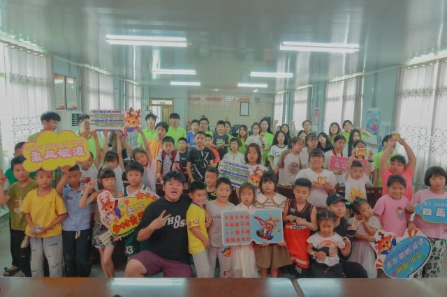 图为推普课堂志愿者和小朋友的合影。大学生网报通讯员 刘志杰 供图